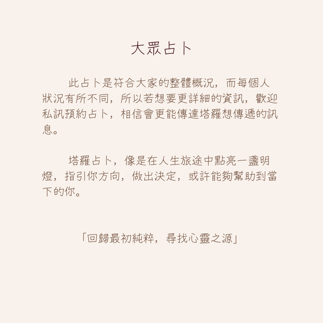 若你想第一時間知道大眾占卜內容和解答,歡迎追蹤花氛園塔羅IG!